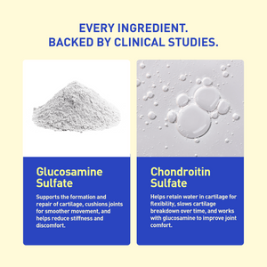 Crafted by health experts, this advanced formula features six essential nutrients to cushion and rebuild cartilage, reduce stiffness and inflammation, strengthen bone structure, and help relieve symptoms of mild osteoarthritis.