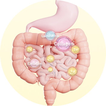 Lysine Hydrochloride (Lysine), Bovine Lactoferrin, Calcium Hydrogen Phosphate Dihydrate (Calcium), Colecalciferol (Vitamin D3), Glutamine, Glycine, Heavy Magnesium Oxide (Magnesium), Hydrolysed Collagen, Menaquinone-7 (Vitamin K2), Riboflavin (Vitamin B2), Taurine, Zinc Gluconate (Zinc)