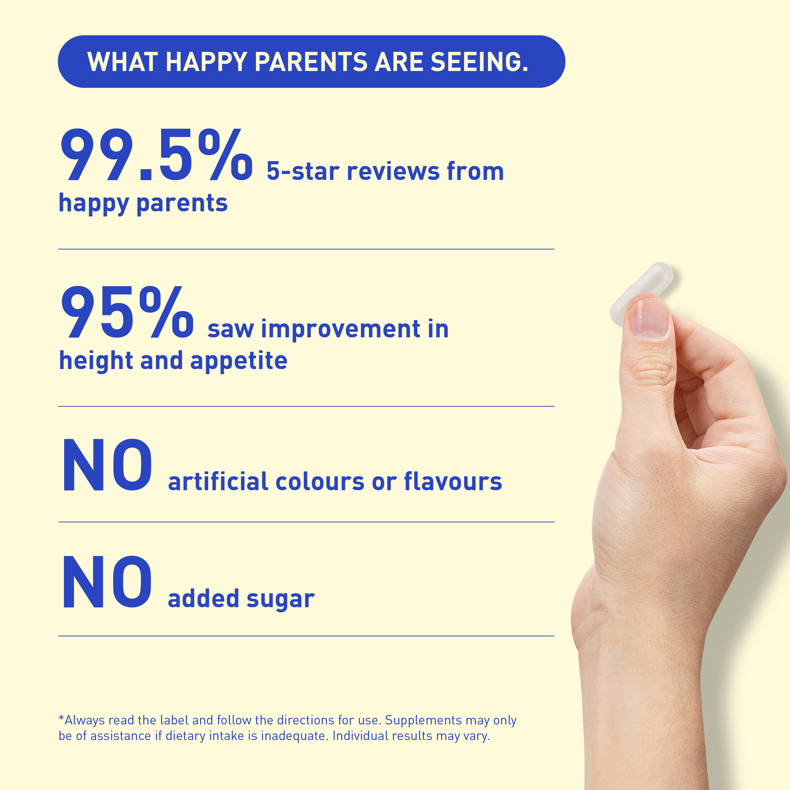 A next-generation growth formula with higher lysine, balanced nutrients, and better absorption — designed for older children and teens who can swallow capsules.