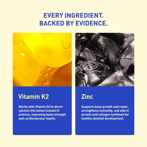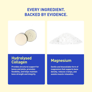 Hydroxyapatite (Calcium), Colecalciferol (Vitamin D3), Hydrolysed Collagen, Magnesium Glycinate (Magnesium), Menaquinone-7 (Vitamin K2), Zinc Amino Acid Chelate (Zinc)
