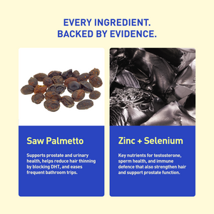 But it’s not just about performance in the bedroom. With zinc and selenium for sperm health, muscle strength and immune defence, plus hormonal and prostate support from Saw Palmetto, this formula covers the essentials of male vitality so you can stay sharp, energised and confident every day.